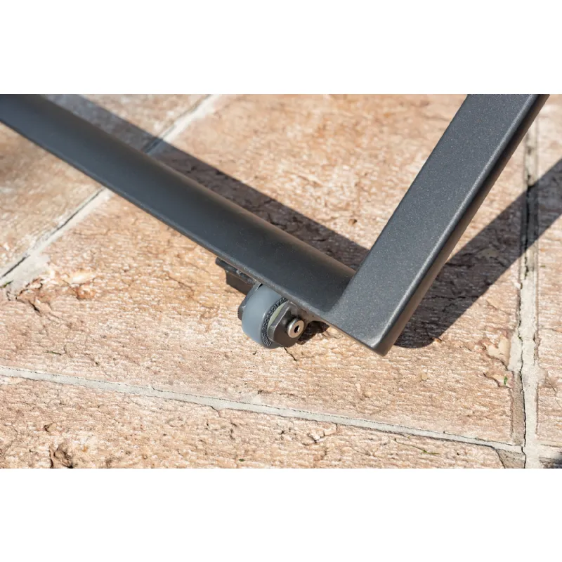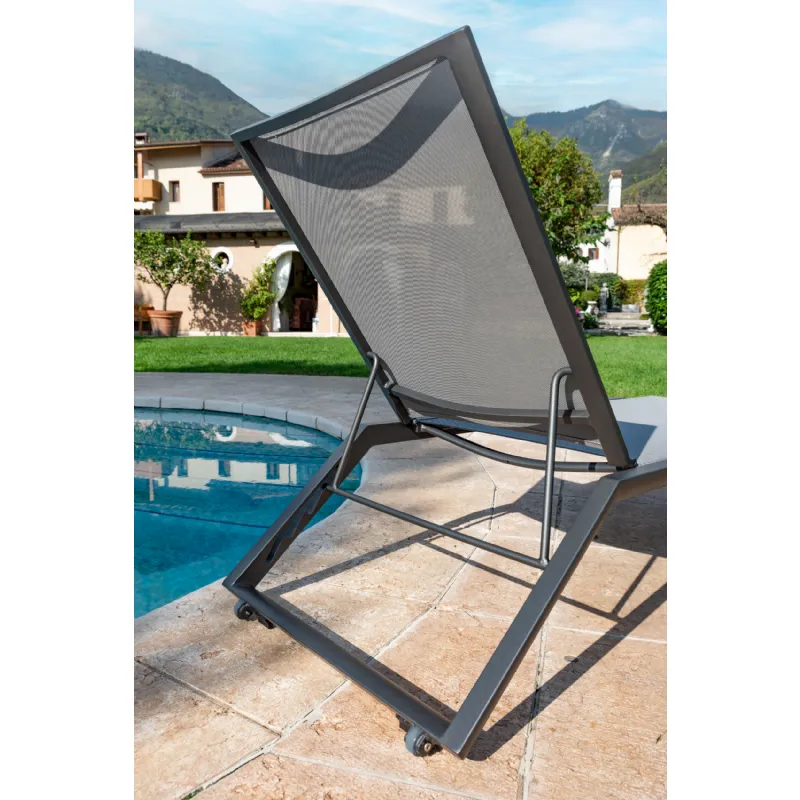 Ležalnik omogoča nastavitev naklona naslona v 4 položajih, zadnje noge pa imajo kolesca, ki omogočajo lažje premeščanje ležalnika.