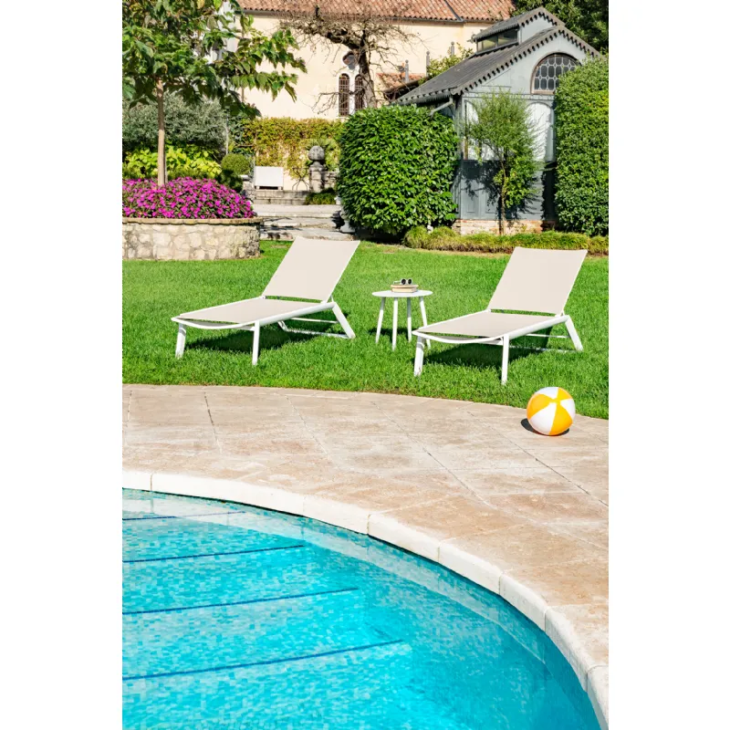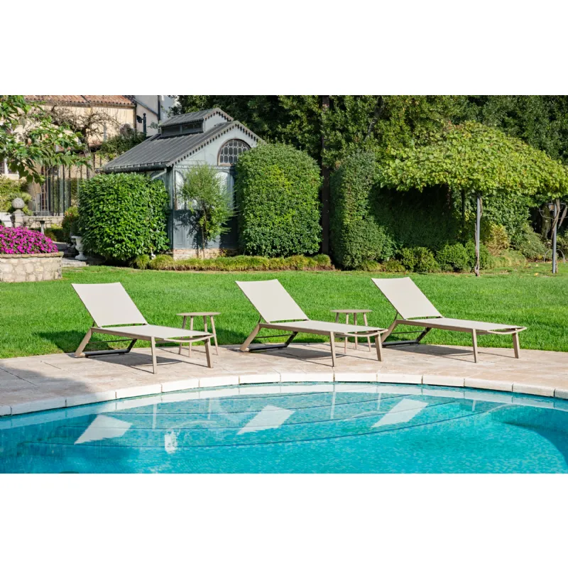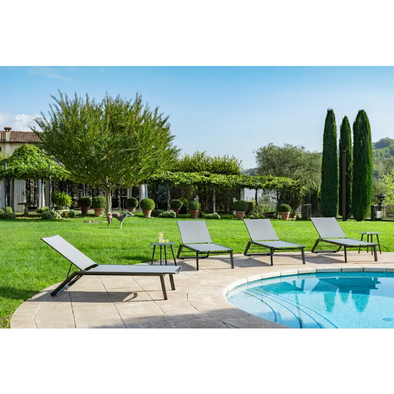 Vrtni ležalnik Dune ima aluminijasti okvir, ter ležišče iz PVC tkanine.