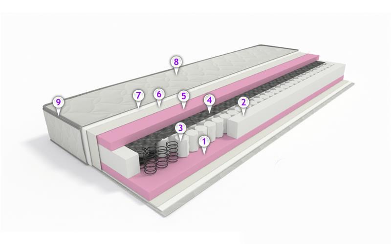 - Žepkasto vzmetenje višine 12cm, debelina žic 2,0 mm (260 žepkov/m2)